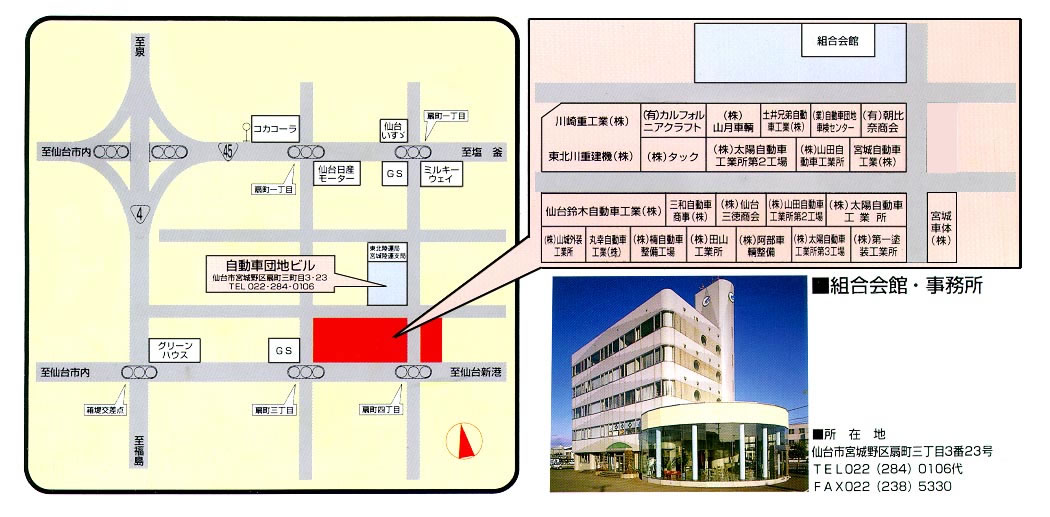 こちら協業組合自動車団地車検センターは、SJDの構成員によって作られた乗用車・小型貨物車専門の車検センターです。 |